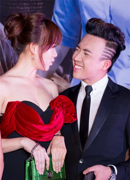 Vẻ mặt ngập tràn sự hớn hở, tự hào của Trấn Thành khi sánh bước bên bạn gái gợi cảm.