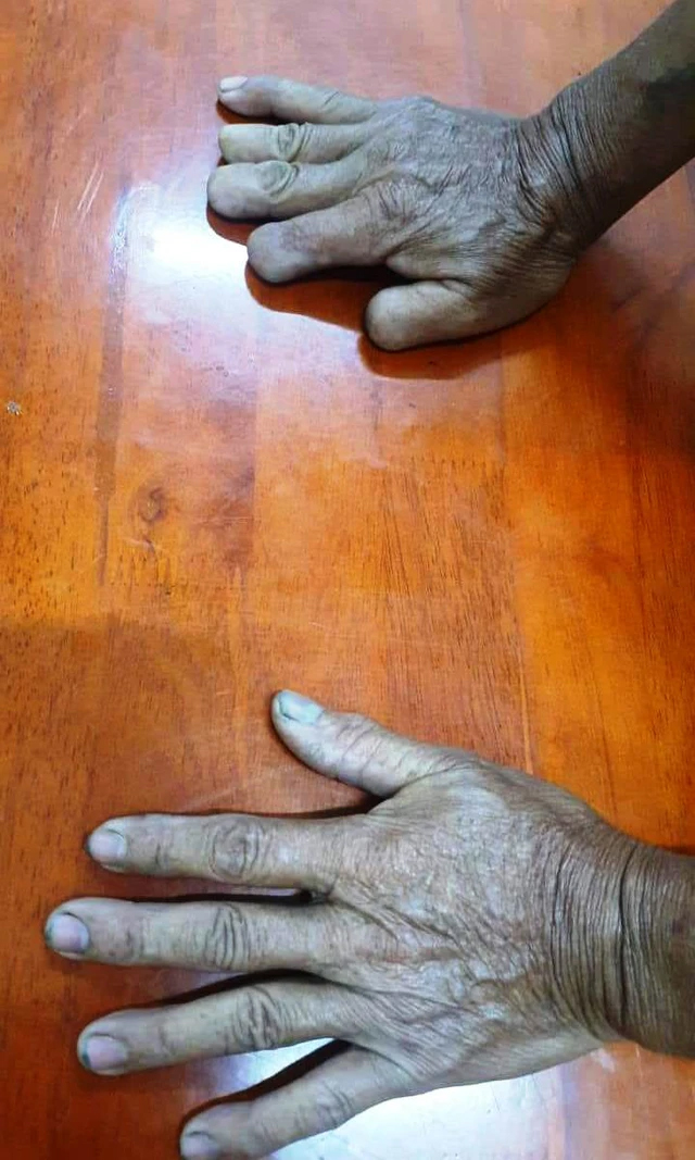 Bàn tay phải bị cụt nhiều đốt - một trong những đặc điểm nhận dạng đối tượng. Ảnh: Công an tỉnh Quảng Ngãi