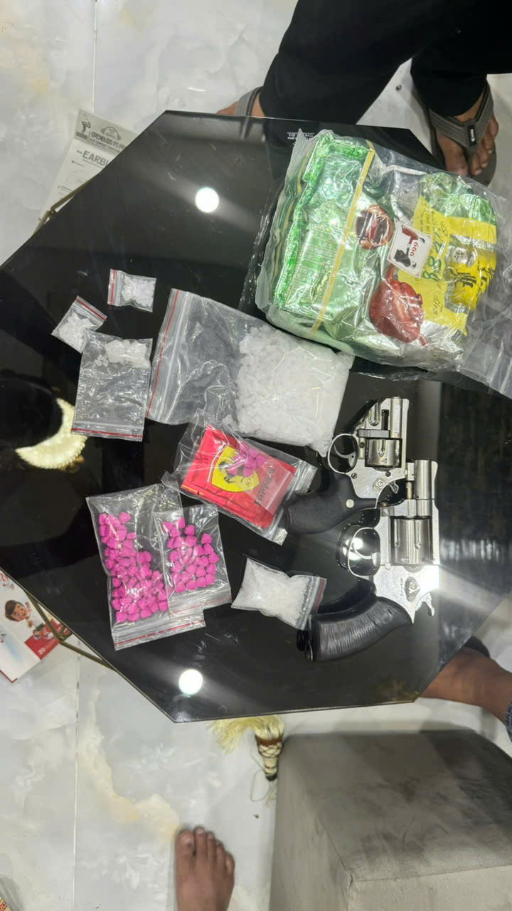 Khoảng một tiếng đồng hồ sau khi bắt giữ Quí, công an quận Bình Tân đã phối hợp với địa phương ập vào nhà của Em thu giữ một lượng lớn ma túy tổng hợp, một súng ngắn và 20 viên đạn.