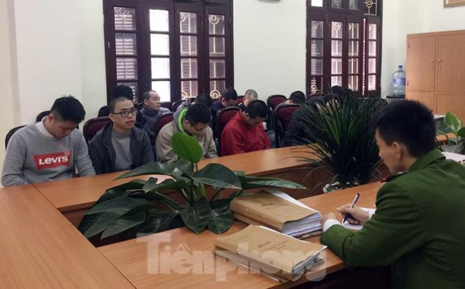 Các đối tượng trong đường dây tổ chức đánh bạc qua game đế chế tại cơ quan điều tra.