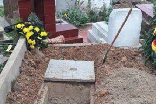 Đến sáng ngày 11/5, sau khi tổ chức lễ cúng, ông H. đập phần mộ, mang thi hài của bà T.T.H. đốt lấy tro cốt. Vụ việc được trình báo, cơ quan CSĐT Công an huyện Cái Bè đã khám nghiệm hiện trường, lấy lời những người liên quan.
