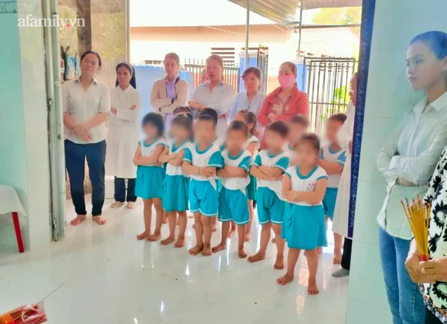 Các bạn bè tại trường mầm non được cô giáo đưa đến viếng bé.