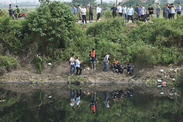 Sau đó, Quân đứng lại trông xe máy, Trung đi bộ đến nơi Hiền đang đứng, đẩy nạn nhân rơi điện thoại, ngã xuống bờ sông Nhuệ. Mặc Hiền kêu cứu "tha cho em", Trung nhảy xuống dìm nạn nhân xuống nước. Khoảng 10 phút khi thấy Hiền không cử động, Trung đẩy em ra lòng sông.