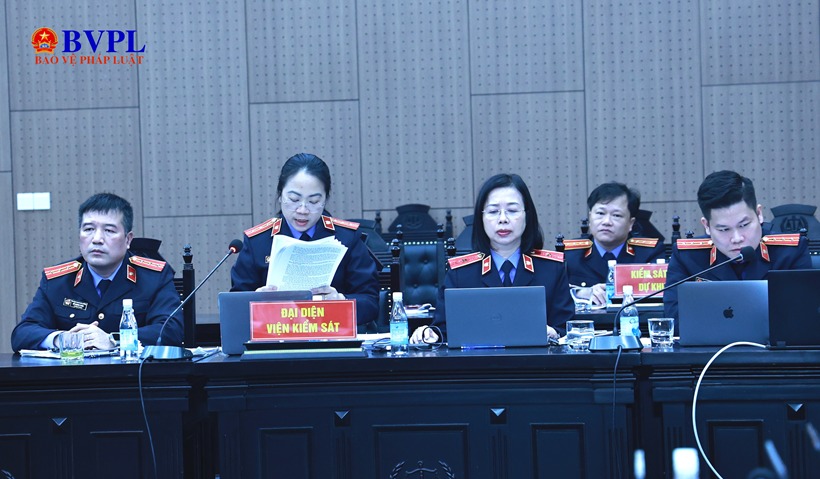 Đại diện VKSND trình bày bản luận tội đối với các bị cáo. Ảnh: H.Nguyên.