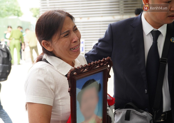 8h40, Bà ngoại bé M. mang theo di ảnh cháu đến tòa