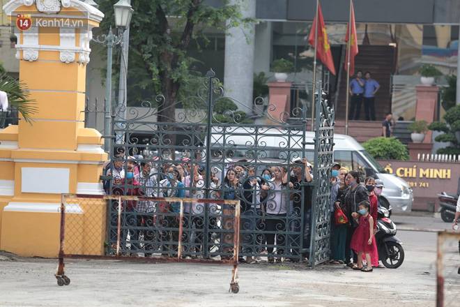 Rất đông người dân đứng trước cổng tòa án để theo dõi vụ việc.