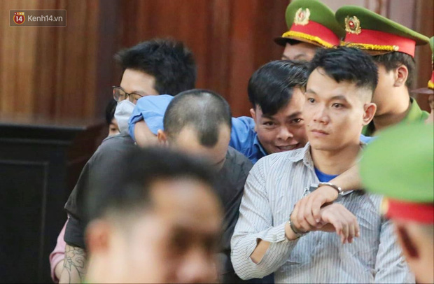 Theo ghi nhận, dù không thể đi vững, được 2 đồng phạm dìu đến phiên tòa nhưng Phúc XO tỏ ra vui vẻ, bị cáo còn cười tươi khi thấy ống kính của PV.