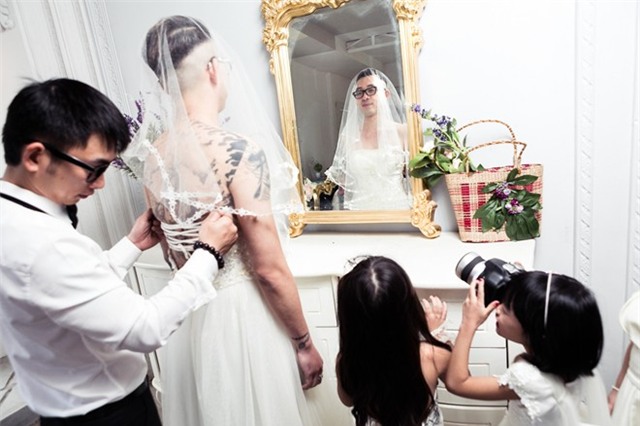 Cô ấy lên kế hoạch rất chi tiết về việc tổ chức lễ cưới cũng như chụp ảnh cưới. Đặc biệt, vợ tôi nêu ý tưởng: tôi sẽ mặc áo cô dâu còn cô ấy sẽ mặc vest khi chụp hình. Ngay khi nghĩ ra cái ý tưởng quái gở ấy, vợ tôi đã đi tìm kiếm để “thửa” một bộ váy cưới vừa vặn nhất cho tôi dù tôi kịch liệt phản đối.