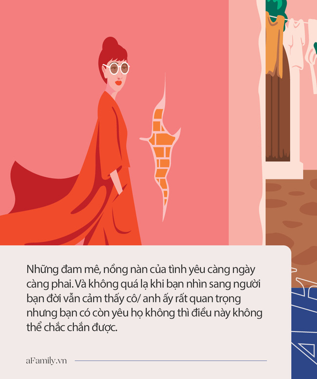 Có lẽ mỗi cuộc hôn nhân khi đạt được 1 "số tuổi" nhất định thì cả vợ hay chồng đều sẽ có cảm giác nhàn nhạt, buồn tẻ. Những đam mê, nồng nàn của tình yêu càng ngày càng phai. Và không quá lạ khi bạn nhìn sang người bạn đời vẫn cảm thấy cô/ anh ấy rất quan trọng nhưng bạn có còn yêu họ không thì điều này không thể chắc chắn được.