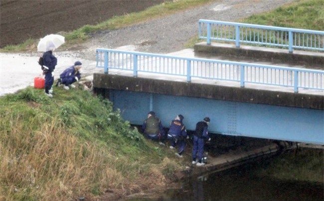 Các nhà điều tra xem xét khu vực tìm thấy thi thể bé gái 9 tuổi ở Abiko, tỉnh Chiba, Nhật Bản. Ảnh: Kyodo.