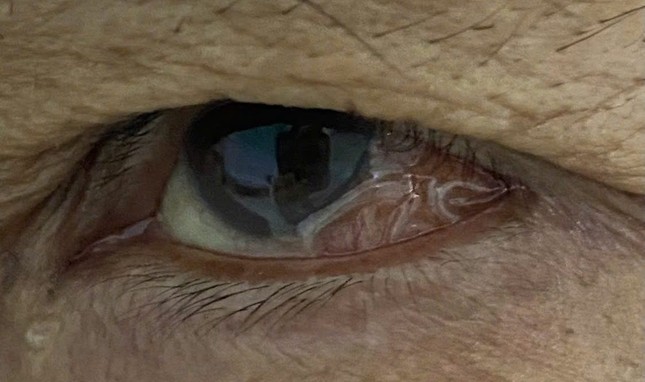 Sau khi thăm khám lâm sàng và soi mắt dưới kính hiển vi, các bác sĩ phát hiện một ký sinh trùng trong suốt, hình dạng giống giun chỉ, có kích thước dài khoảng 14 cm, đường kính 0,5 mm đang chuyển động tại vùng thái dương dưới kết mạc nhãn cầu.