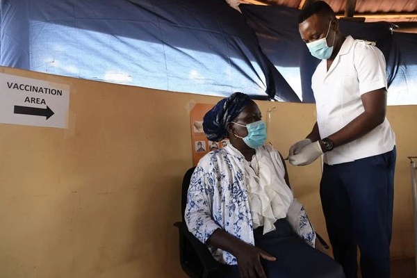 Một nhân viên y tế vaccine Oxford / AstraZeneca ở Francistown, Botswana.