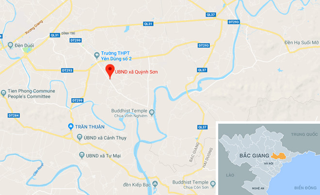 Xã Quỳnh Sơn (Yên Dũng, Bắc Giang), nơi người dân phát hiện thi thể 2 nam thanh niên. Ảnh Google Maps.