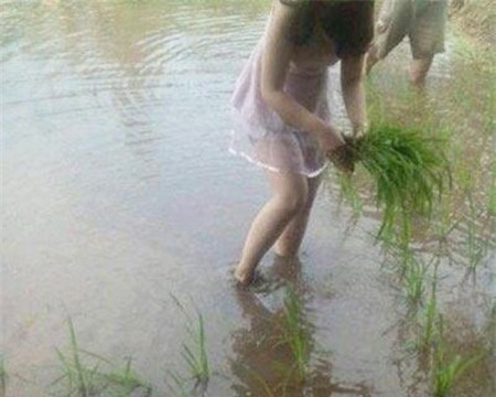Thiếu nữ mặc váy mỏng trong suốt đi làm ruộng |
