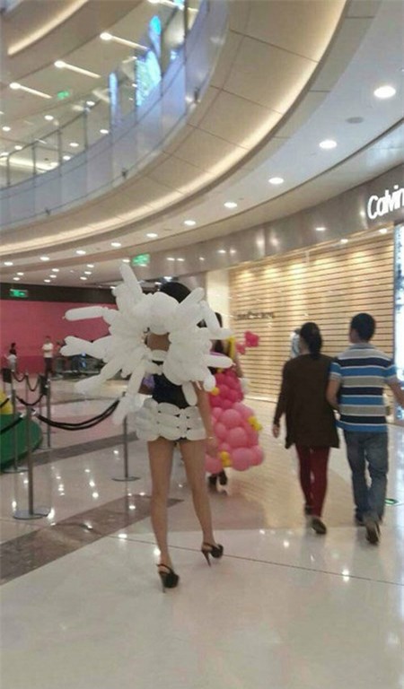 Một bộ váy làm từ bóng bay siêu ngắn bị "chớp" hình ảnh ở trung tâm thương mại. |