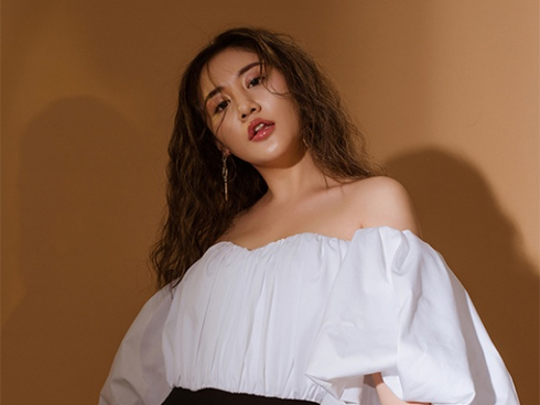 Chiếc cằm nhọn có phần không ăn nhập với gương mặt nữ ca sĩ.