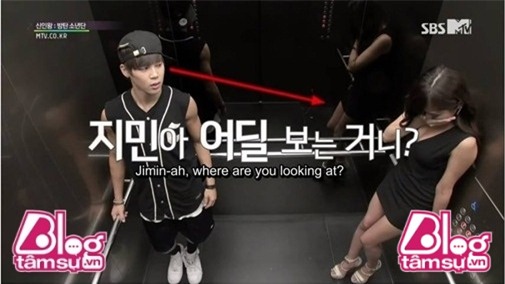 Anh chàng Jimin của BTS dù đang nói chuyện cũng không thể rời mắt khỏi vòng một của cô nàng da màu nóng bỏng