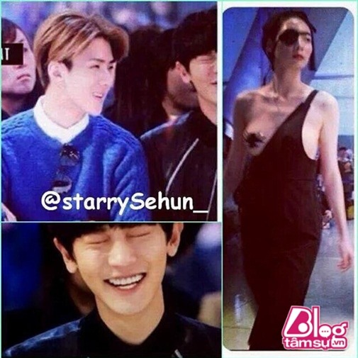 Trước vòng một chỉ che nhũ hoa của người mẫu, trong khi Chanyeol ngại không dám mở mắt thì Sehun có vẻ vô cùng thích thú ‘thưởng thức’