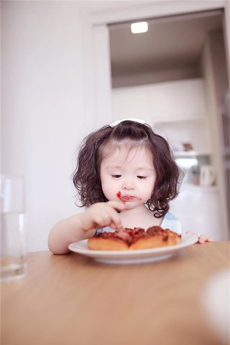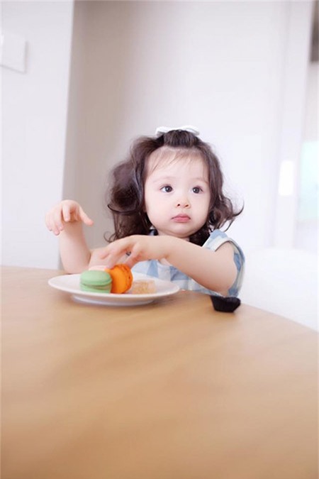 cà dễ thương của nàng “thiên thần nhí” Cadie Mộc Trà khi đang ngồi ăn
