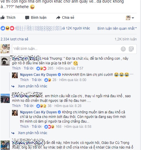 Chia sẻ về việc này, MC xinh đẹp Nguyễn Cao Kỳ Duyên đã có một bài viết trên trang cá nhân về chuyện ngoại tình, được cho là 'bí kíp' dành cho các bà vợ có chồng lăng nhăng, gái gú. Xin trích dẫn ra đây toàn bộ phần quan điểm của MC Kỳ Duyên.