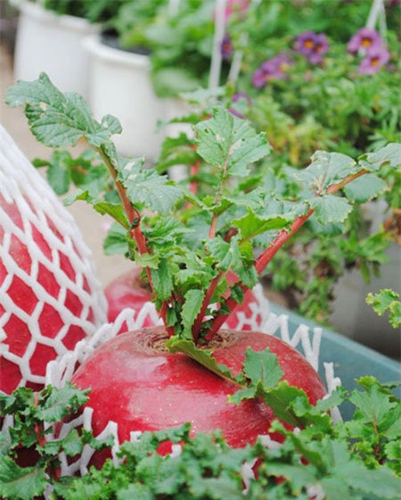 Củ cải cảnh to, tròn và mỡ hơn cả cải trồng để ăn. |
