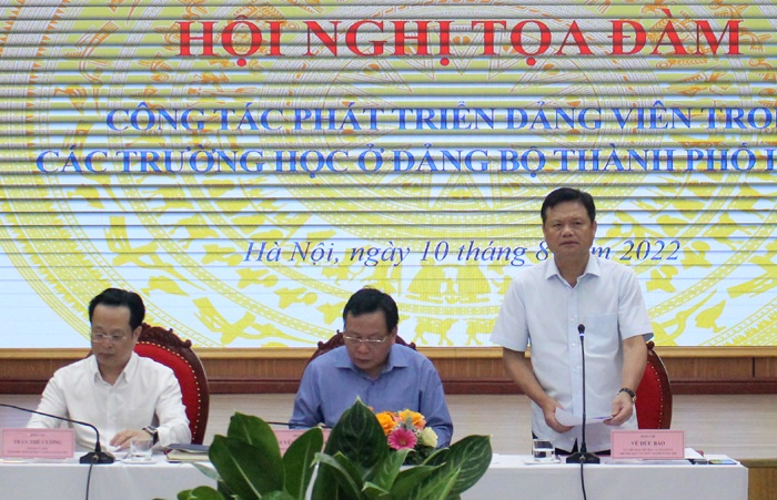 Phát biểu tại hội nghị, Trưởng ban Tổ chức Thành ủy Vũ Đức Bảo cho rằng, công tác phát triển đảng viên trong khối THPT hiện nay của Hà Nội còn thấp, trong khi dư địa và tiềm năng rất lớn, nhưng khâu tổ chức thực hiện còn tồn tại. Do vậy, thời gian tới Ban Tổ chức Thành ủy sẽ chủ trì phối hợp, tham mưu, báo cáo Thành ủy để ban hành hướng dẫn, tiêu chuẩn về kết nạp đảng viên trong học sinh THPT trên địa bàn Thành phố.