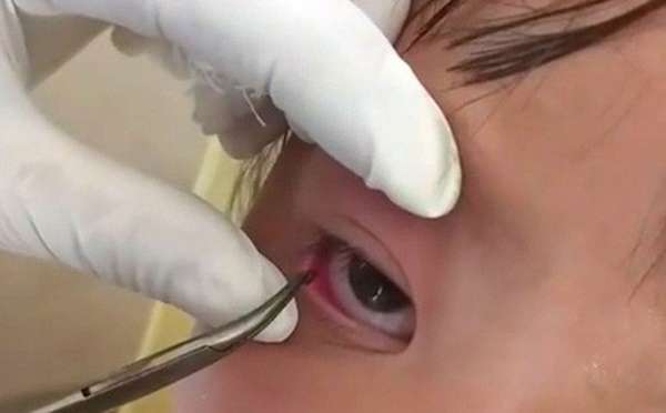 Qua thăm khám các bác sỹ đã phát hiện trong mắt phải của cháu X có con vắt đang hút máu, sinh sống. Sau khi phẩu thuật con vắt đã được lấy ra thành công.