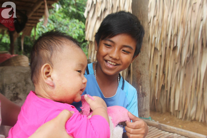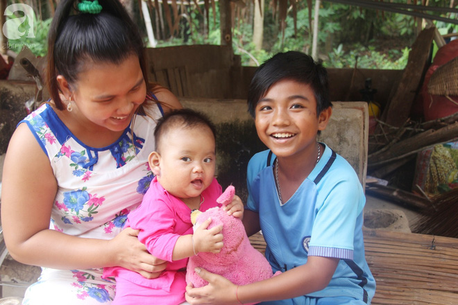 Nở nụ cười hạnh phúc ôm bé Vy vào lòng, Thạch Minh Đạt (10 tuổi) hào hứng nói: "Con được đi học trở lại rồi, con hạnh phúc lắm. Trước giờ con cứ nghĩ sẽ chẳng bao giờ quay lại được trường, con nhớ thầy, nhớ bạn nhiều lắm".