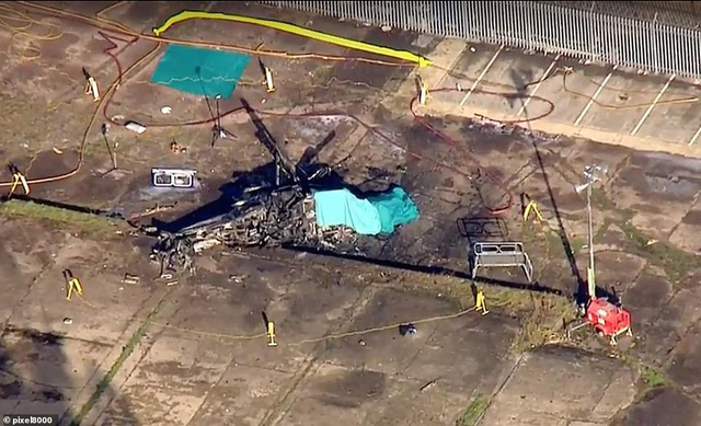 Trực thăng bốc cháy ngùn ngụt sau khi rơi (Ảnh: Shutterstock)