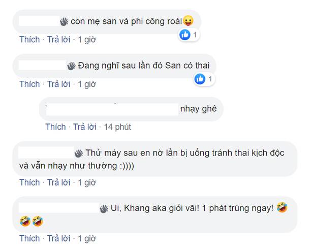 Chẳng biết giả thuyết này có đúng không nhưng trên mạng xã hội, khán giả đang vô cùng háo hức và cùng nhau gửi lời chúc mừng tới cặp đôi phi công trẻ - máy bay già. Nhiều người còn tếu táo cho rằng Khang phi công quả là tài tình khi mới có "đu đưa" một lần mà đã ra thành quả.