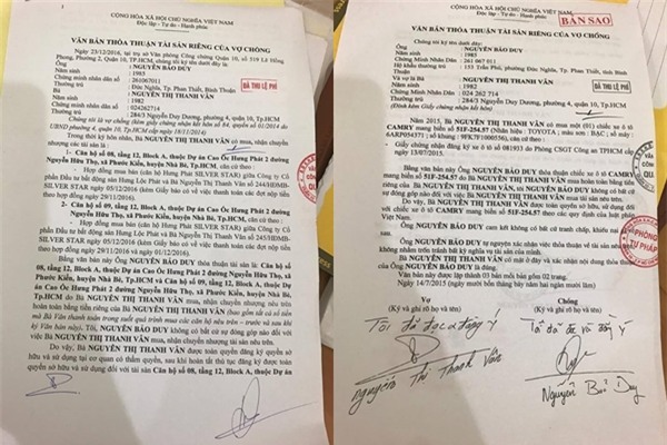 Giấy tờ pháp lý chứng minh tài sản cá nhân được Phi Thanh Vân công khai mới đây