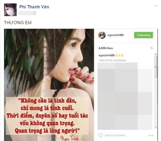Phi Thanh Vân thương Ngọc Trinh khi biết tin cô có cuộc tình mới.
