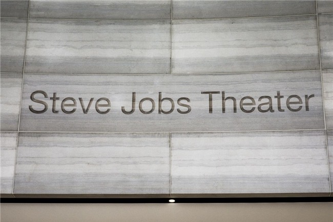 Trong khi đó, Nhà hát Steve Jobs, nằm trên một ngọn đồi nhỏ, cách Visitor Center một quãng ngắn đi bộ. Một tòa thủy tinh giống như một ngọn nến dài 20 feet, đường kính 165 feet, có mái che phản chiếu bầu trời. Nó cũng là một tàu vũ trụ, với quy mô nhỏ hơn.
