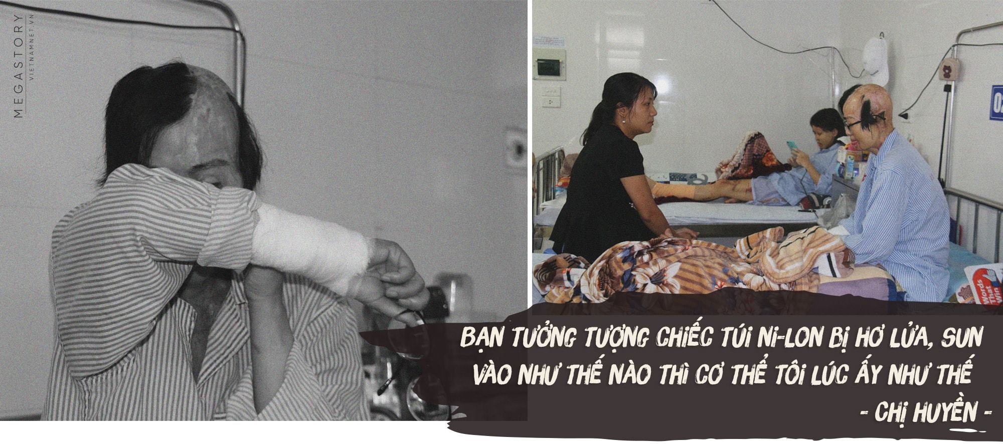 ‘Bạn tưởng tượng chiếc túi ni-lon bị hơ lửa, sun vào như thế nào thì cơ thể tôi lúc ấy như thế’. chị Huyền nhớ lại.