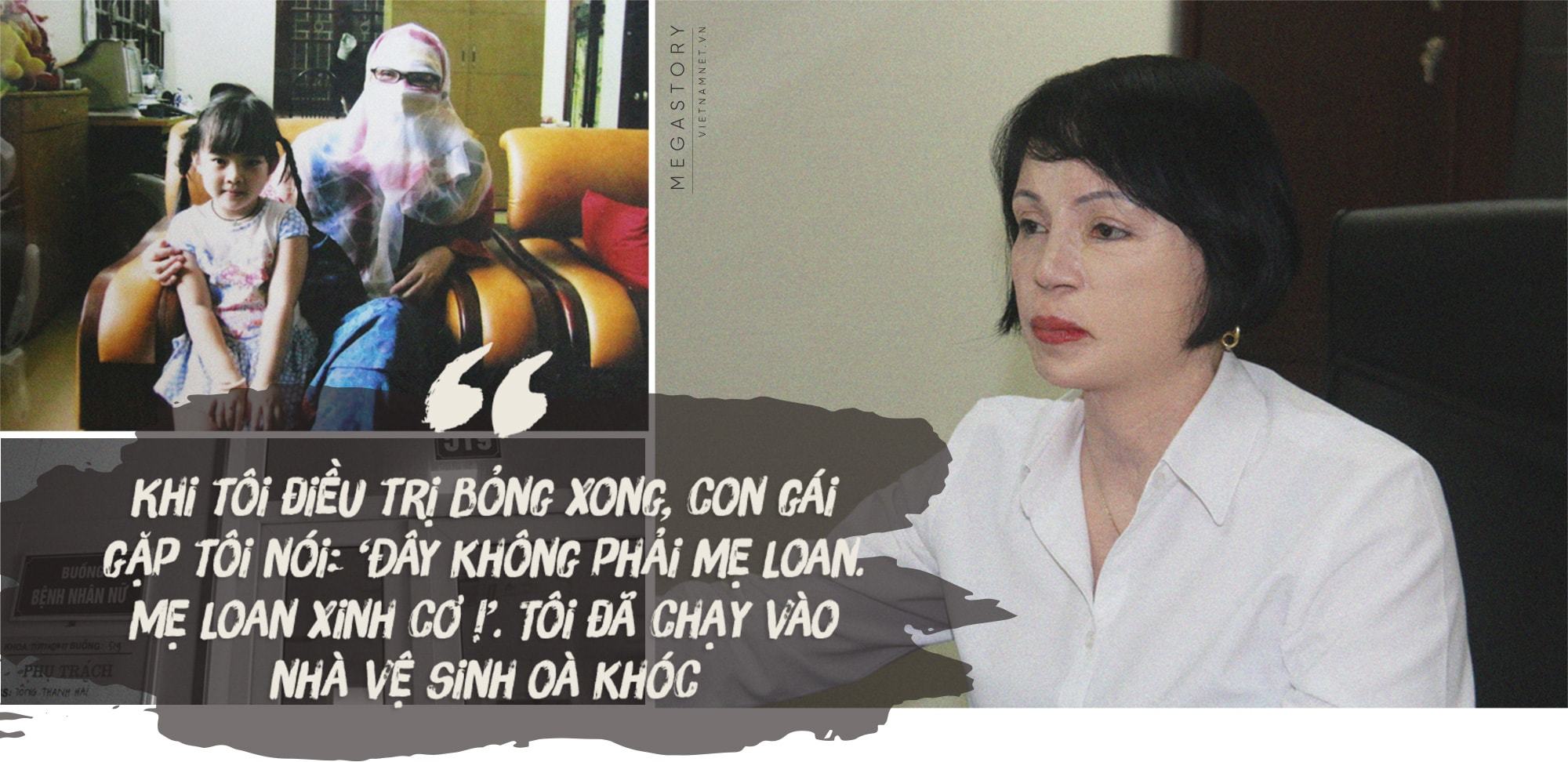 ‘Khi tôi điều trị bỏng xong, con gái gặp tôi nói: ‘Đây không phải mẹ Loan. Mẹ Loan xinh cơ!’. Tôi đã chạy vào nhà vệ sinh oà khóc’.