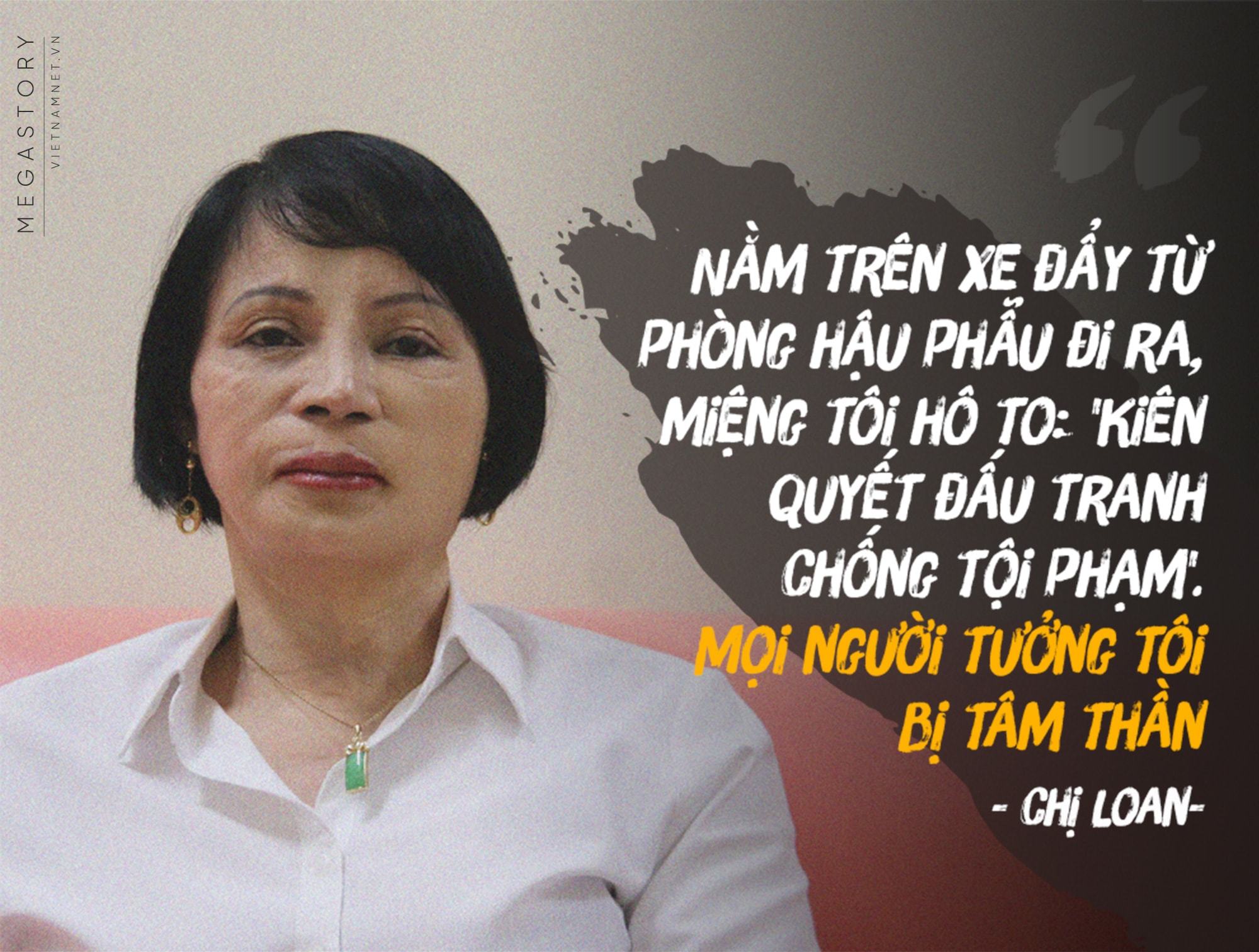 Niềm tin sắt đá ấy đã cho chị sức mạnh để vượt qua mọi đau đớn. Đến mức, sau ca phẫu thuật đầu tiên, khi được đẩy ra từ phòng hậu phẫu, miệng chị hô lớn ‘kiên quyết đấu tranh chống tội phạm’. Mọi người tưởng chị bị tâm thần.