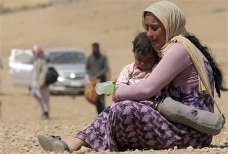 Hai mẹ con người Yazidi chạy phiến quân IS tại Sinjar, Iraq, hồi tháng 8/2014. Ảnh: Reuters |