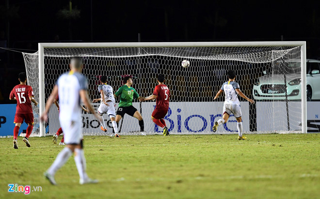 Sau quả treo bóng của Đoàn Văn Hậu vào khu vực cấm địa từ cánh trái, tiền vệ Quang Hải dứt điểm bằng vài đưa bóng đi chệch khung thành Philippines.