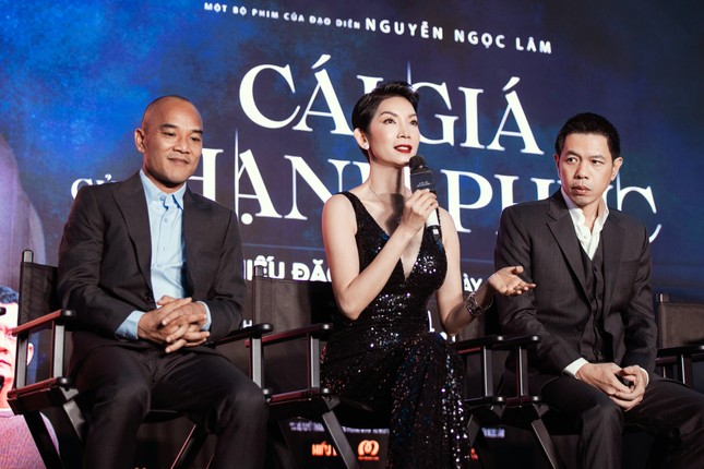 Đạo diễn Nguyễn Ngọc Lâm và Xuân Lan, diễn viên Thái Hòa tại buổi ra mắt Cái giá của hạnh phúc. |
