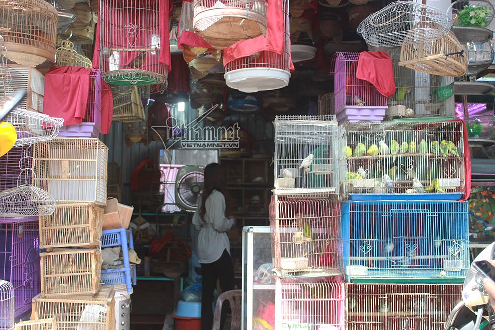 Các cửa hàng bày bán chim ở đây rất đông khách vào hỏi mua.