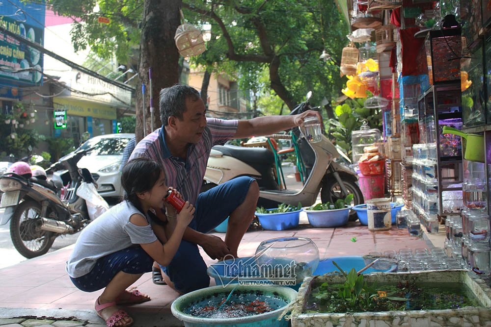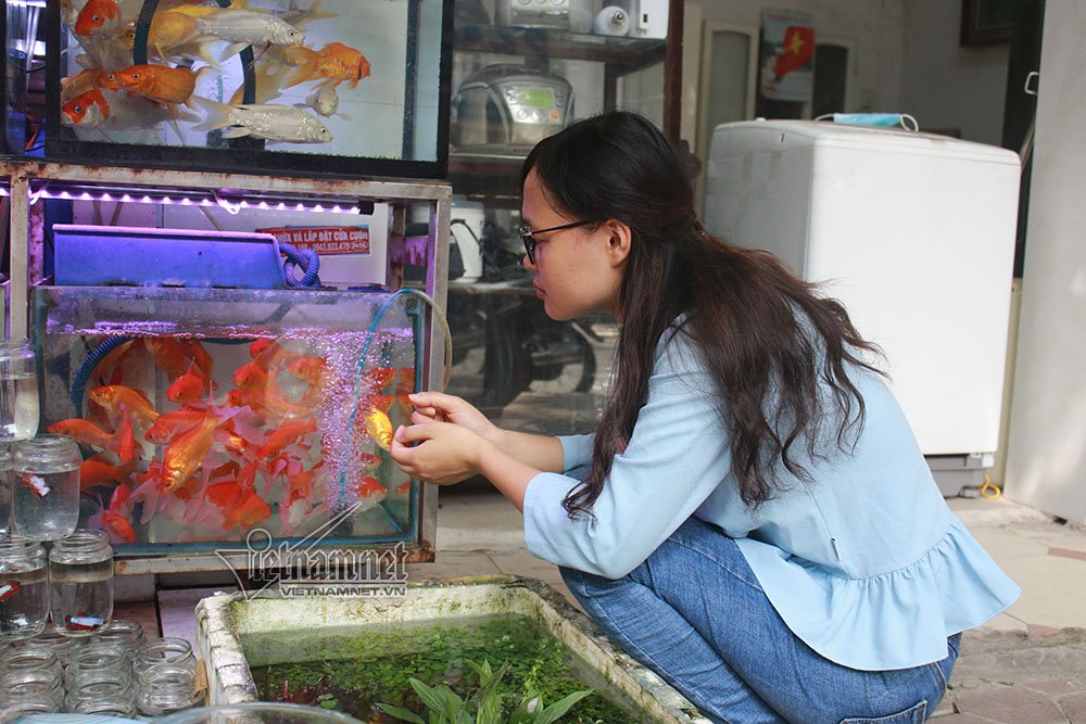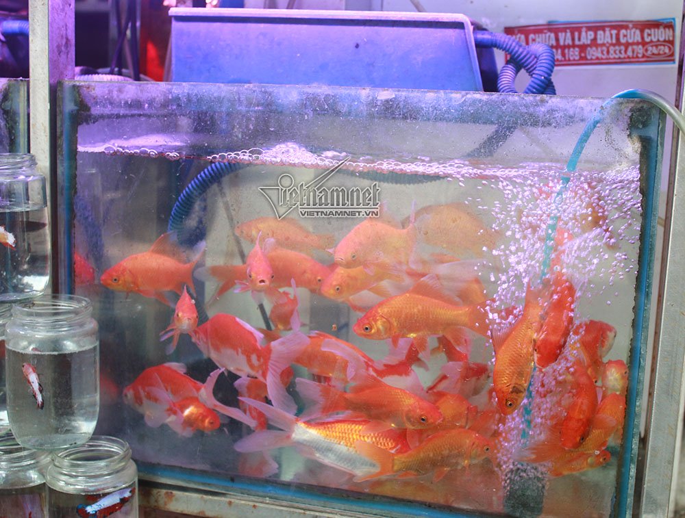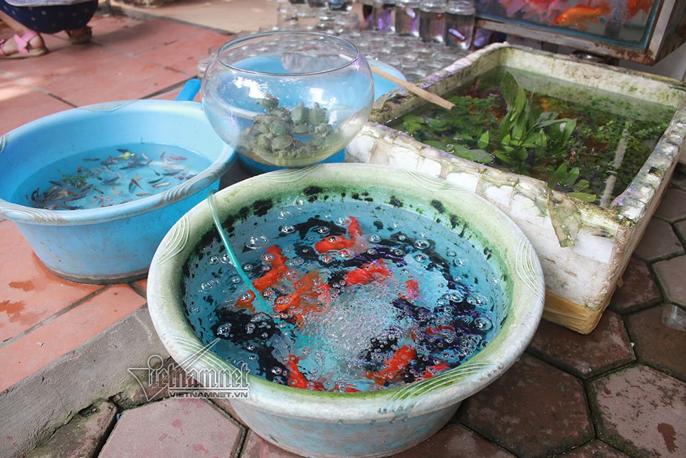 Tại phố Hoàng Hoa Thám, cá phóng sinh cũng được bày bán nhiều nhằm phục vụ nhu cầu của người mua trong Rằm tháng 7.