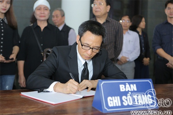 Nghệ sĩ Anh Tú - Phó Giám đốc Nhà hát kịch Việt Nam ghi đôi lời vào sổ tang lễ.