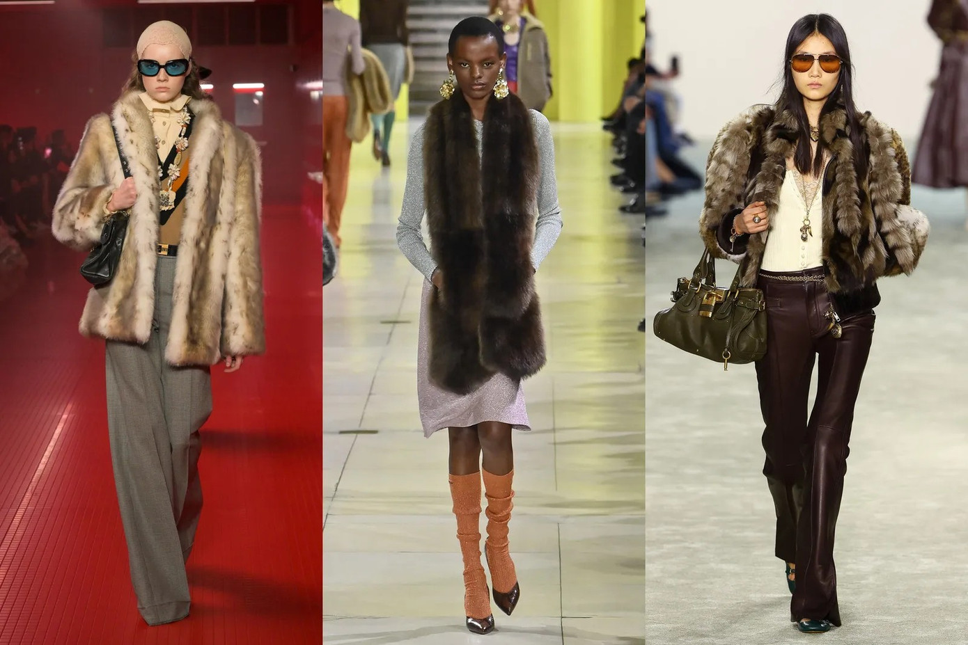 Mặc dù lông thú giả xuất hiện rất nhiều và ở mọi item, nhưng những món được yêu thích nhất là áo khoác, khăn choàng và phụ kiện charm bag, khi phối hợp phải gợi lên phong cách bohemian thập niên 70.