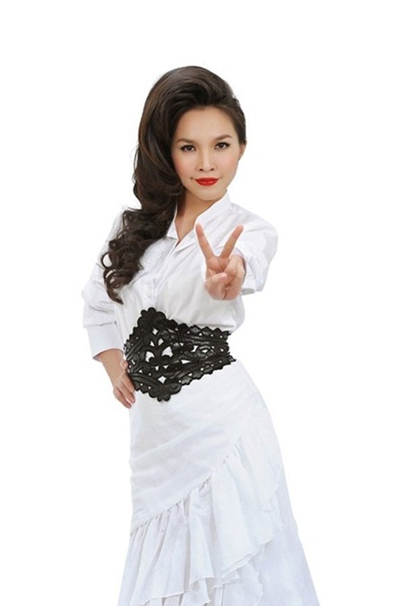 Lưu Hương Giang đã tự cộng thêm cho mình vài tuổi với bộ váy này. |