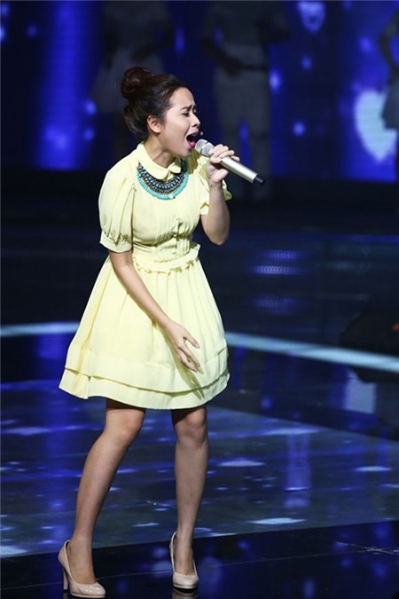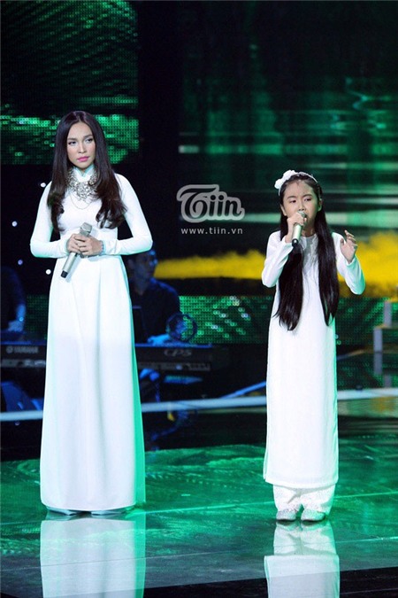 Áo sơmi cổ đính ren nhẹ nhàng quanh vai luôn là 1 sự lựa chọn an toàn và đủ sang trên sân khấu The Voice Kids. Tuy nhiên, khi nó được kết hợp cùng chân váy quấn lụa "ngang dọc" và màu sắc như thế này thì mọi chuyện lại hoàn toàn khác. |