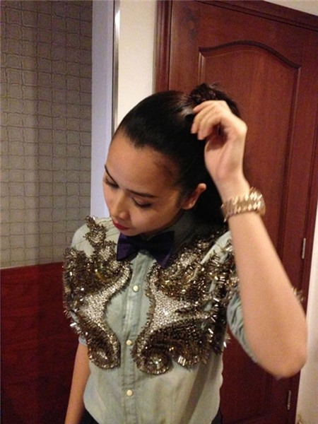 Bộ cánh hiếm hoi của bà xã Hồ Hoài Anh được lòng công chúng chính là chiếc áo trễ va peplum ở vòng giấu mặt. |