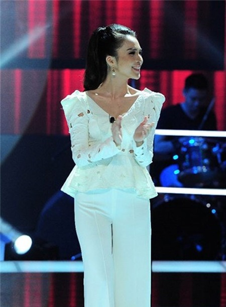 Bộ cánh được lòng công chúng hiếm hoi của Hiền Thục trên sân khấu The Voice Kids. Quần ống suông và áo peplum ren đơn giản tạo nên sự sang trọng, quý phái hơn hẳn cho người đẹp. |