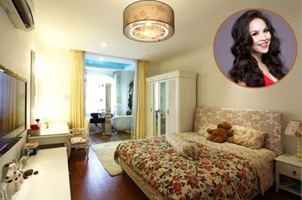 Phòng ngủ của Hồ Ngọc Hà không chỉ rộng rãi mà còn rất lộng lẫy với thiết kế mang phong cách Châu Âu.