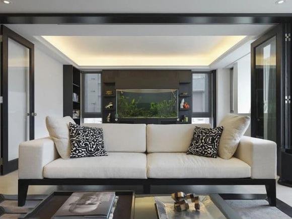 Nếu vì bố cục của ngôi nhà không thể dựa vào tường, bạn cũng có thể đặt một tấm bình phong hoặc một chiếc tủ phía sau ghế sô pha.