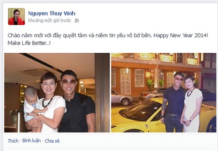 Cùng với những hình ảnh quý giá này, Thúy Vinh cũng không quyên chia sẻ cảm giác hạnh phúc và niềm tin vô bờ khi bước sang năm: "Chào năm mới với đầy quyết tâm và niềm tin yêu vô bờ bến. Happy New Year 2014! Make Life Better..!!"